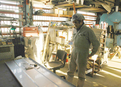 - バンパーまわりのオリジナル物の製作が多いですね。お客さんの要望を聞いて一からつくるオーダーメイド製品がメインです。例えばサイドバンパー、他人がやっていない自分だけの物を付けたいという方が多いので、そのリクエストに限りなく近い形で製作したいですね。もちろんプロから見たアドバイスや修正点については打ち合わせを重ねますよ。ステンレスは、薄く光り物なので扱いが難しい点はありますね。繊細な素材なので注意しないと歪みが出てしまうため、曲げる時や溶接時には細心の注意が必要です。